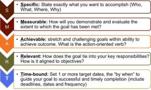 - Make sure they’re SMART: specific, measurable, achievable, relevant, and time-bound.